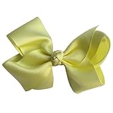 This adorable yellow hair bow is for girls of all age. The hair bow has a 4-inch span, is attached to a ribbon-coved pinch clip. The hair bow is made with all grosgrain ribbon. Made for girls of any age. Read more